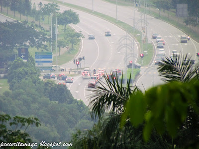 Lepas balik kerja, saya bersama teman-teman pejabat plan kononnya nak trekking kat Taman Alam Rimba. Tapi bila sampai kat taman tu baru kami tahu taman ni masih belum sepenuhnya siap. Masih di tutup untuk kunjungan orang ramai. Tapi... jenis 'dekhaka' kan? Kami terjah juga. Parking kereta di tepi jalan dan kami mula berjalan menaiki bukit melalui jalan laluan berkuda. Agak santai tapi, jalan dia boleh tahan penat. Hoho!